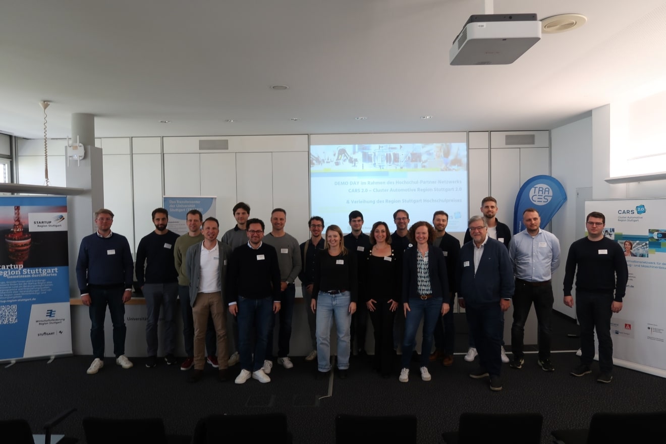 Eingerahmt wurde die Preisverleihung von den Präsentationen der zweiten Runde der vom Förderprojekt CARS2.0 ausgetragenen „InnoRegioChallenge“, in der fünf Hochschulteams innovative Antworten auf reale Industrieherausforderungen in Fahrzeug- und Maschinenbau vorstellten, sowie anschließenden Networking-Gesprächen mit Vertreterinnen und Vertretern aus Unternehmen, Forschung und Start-up-Ökosystem. Bereits im Mai 2025 hatten KMU/Institute ihre aktuellen Herausforderungen eingereicht und nach Lösungsgebern aus den Hochschulen gesucht. Insgesamt fünf Teams haben sich gefunden, die die Challenges in den letzten Monaten bearbeitet haben und nun ihre Lösungen vorstellen konnten. Dabei zeigte sich vor allem, wie komplex viele Herausforderungen sind und dass Kooperationen und Wissenstransfer dringend nötig sind, um neue Perspektiven zu gewinnen und die Probleme zu Lösen. Danke an Ammonigy GmbH, NuCOS GmbH, NUVUS GmbH, TTI GmbH – TGU Aero Prepreg Tow und natürlich an die Teams der Universität Stuttgart und der Hochschule Esslingen!